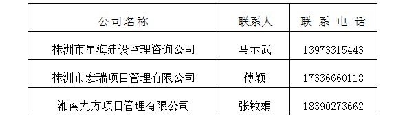 第三中标候选人:株洲市星海建设监理咨询公司;
