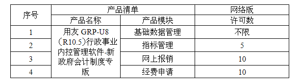 内容:用友GRP-U8(R10.5)行政事业内控管理软件中基础数据管理、指标管理、网上报销、经费申请4个模块的安装和调试。模块具体内容如下: