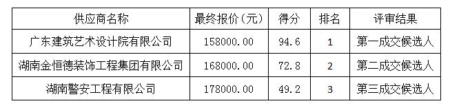 湖南工贸技师学院的湖南工贸技师学院食堂装饰装修项目设计服务采购竞争性磋商采购项目于 2019年07月26日结束,现将成交结果公告如下: