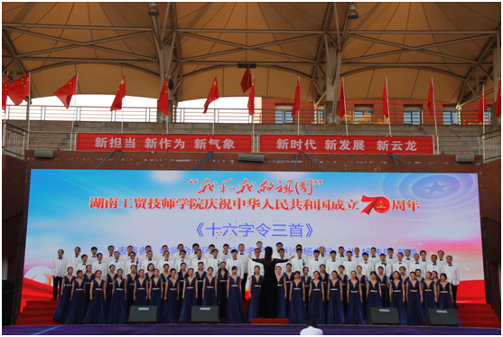 9月26日下午,湖南工贸技师学院庆祝中华人民共和国成立70周年师生歌咏比赛隆重举行,同时也是学院“不忘初心、牢记使命”主题教育的实践活动。来自机械工程、电气信息、通用航空、建筑装饰、经贸物流、现代制造等六大院系师生轮番登台,用昂扬的面貌嘹亮的歌声献礼新中国成立七十周年。