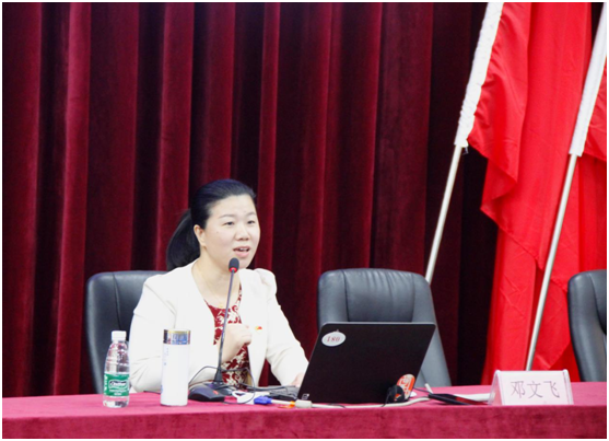 10月8日下午,学院邀请中共株洲市委党校基础理论教研部邓文飞副教授讲授《深入学习领会习近平新时代中国特色社会主义思想》专题讲座。党委副书记肖翔主持,全体教职工和学生党员参加学习。