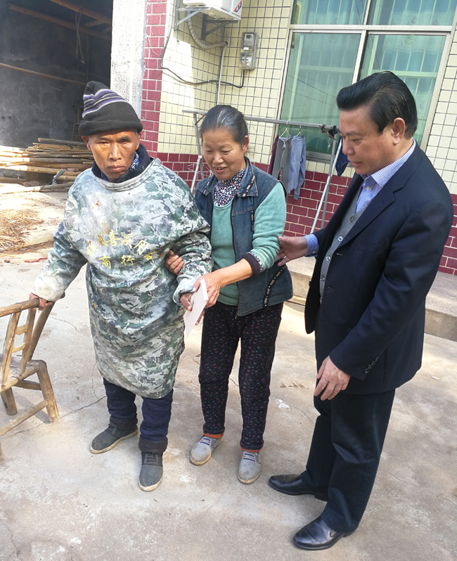 党委书记张格林(左二)到贫困户黎爱国家中走访慰问