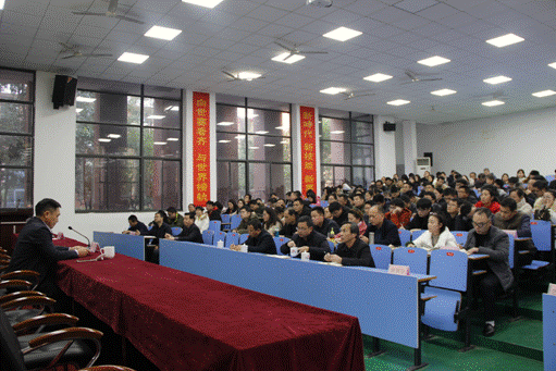 12月3日,学习贯彻党的十九届四中全会精神市委宣讲团在学院举行宣讲报告会,市委宣讲团成员、学院党委书记张格林作宣讲报告。报告会由院长陈洪星主持,学院全体干部职工、学生党员以及退休职工和优秀学生代表近300人参加报告会。