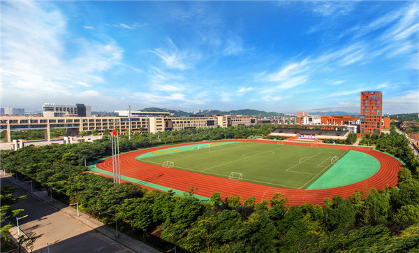 湖南工贸技师学院夏日剪影: ▲俯瞰运动场:天空澄碧,远山含黛