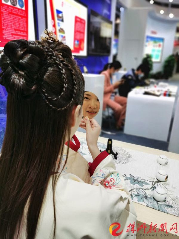 在湖南工贸技师学院的铜镜研磨工艺展位,荧光如水般的铜镜,吸引了众多观展者的目光。该校师生采用世界技能大赛塑料模具工程项目的研磨抛光工艺,高度还原了古代铜镜的镜面效果,展区分为“镜妆红颜”,有“铜镜照佳人”“铜镜正衣襟”“铜镜秀技艺”三个分区,从铜镜中走出来的汉风唐韵,让许多观展者感叹历史长河中湖湘工匠的精湛技艺。