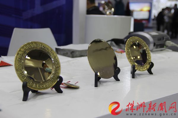 ▲湖南工贸技师学院的铜镜研磨工艺展位。通讯员 供图
