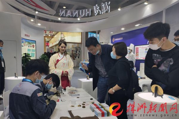 除了常规比赛,大赛组委会还同步开展了系列特色技艺技能等交流活动,来自全国各地的特色技艺技能亮相“国赛”。湖南展馆设置了省陶瓷技师学院、省商业技师学院、湖南工贸技师学院、衡阳技师学院等四个主要展位,展示了多种绝技特色产品。