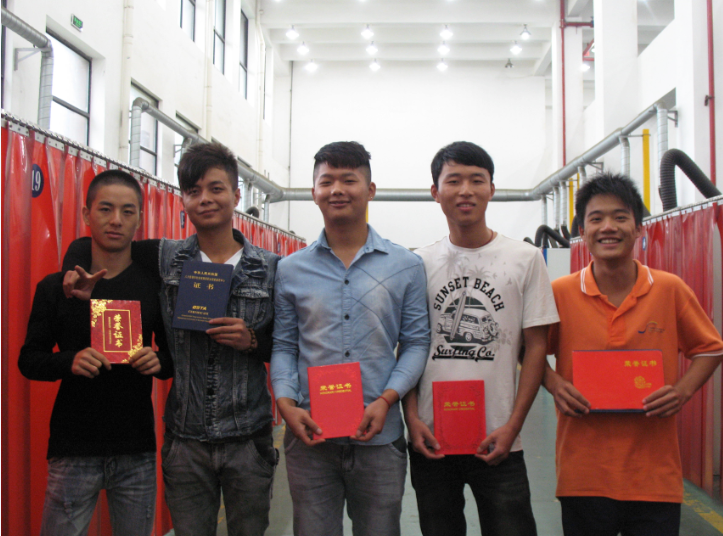 焊接专业学生获奖,在焊接实训车间合影
