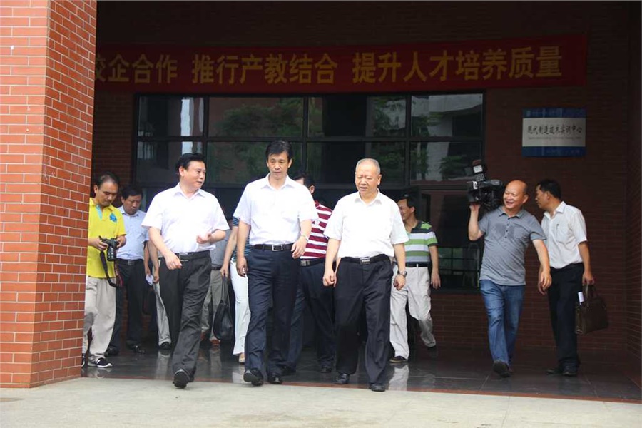 7月2日上午10:30,副省长蔡振红一行莅临我院视察指导工作。蔡副省长抵院后在陈洪星院长和在家院领导陪同下实地参观了校园环境和现代制造技术实训中心,陈院长向来访领导详细介绍了现代制造技术实训中心的建设与发展情况,该中心不仅是我院的数控实训教学区,而且还是人社部“一体化”教学改革的试验田,同时也是省、市技能竞赛的指定赛点和集训基地。蔡副省长充分肯定了学院的办学理念和成绩,他希望学院再接再厉,进一步加大教育教学改革创新力度,创新技能人才培养模式,进一步完善校企合作的体制机制,紧密对接湖南重点产业和企业需求,实现办学专业设置和高产需求、课程内容与职业标准、教学过程与生产过程相对接。他要求学院办学必须坚持就业导向,积极推行技能人才培养模式改革,不断提高人才培养的针对性、有效性,持续扩大培养规模,为更好地服务地方经济建设,为推动湖南经济转型升级、提供更多高技能专业人才支撑做出新的贡献。