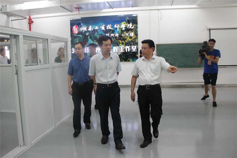 张司长一行抵校后,在陈洪星院长和其他领导的陪同下参观了校园环境和实训车间,观摩了学生现场实训课。陈院长向张司长简要介绍了学院发展历程和办学特色,以及今后发展的一些设想。张司长接受随行记者采访时表示,他没有想到湖南有这么漂亮的技工院校,学院的校园环境和建设现状让他十分惊喜。他指出,学院专业发展很有前瞻性,开办的3D打印技术、工业机器人、激光技术等专业符合现代职业教育发展趋势和区域经济发展需要。他希望学院继续坚持高端引领、校企合作、内涵发展的办学思路,加大改革创新力度,拓展发展空间,更好地发挥在区域经济发展和职业能力建设中的重要作用。
