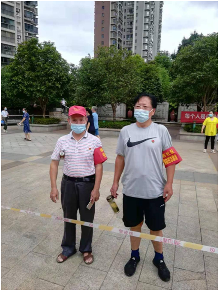 学院小区志愿者张志老师和刘杜英老师参与社区志愿活动