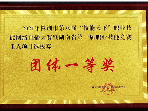 12月16日,株洲市第八届“技能天下”职业技能网络直播大赛颁奖典礼在株洲传媒大厦演播厅举行。在11个赛项的比拼中,学院夺得5项冠军,荣获团体一等奖。