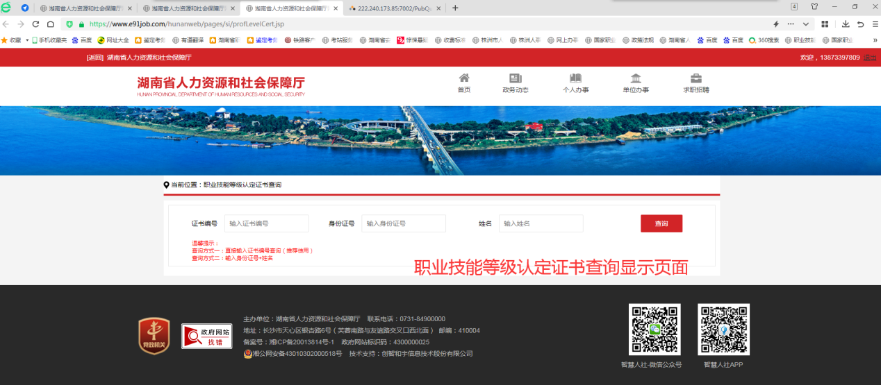 2、输入证书编号、身份证号、姓名(任意两项内容),点击查询即可