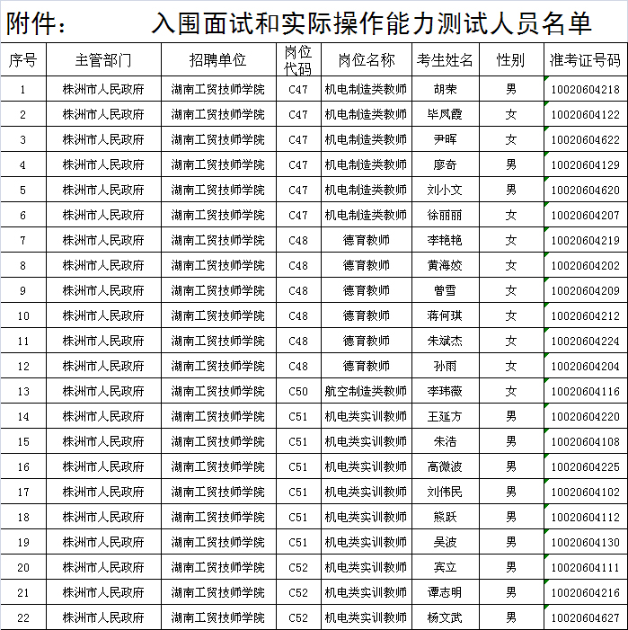 4、面试和实际操作能力测试成绩以及入围体检名单等均在市人社局和学院官网公示,请考生及时关注网站信息。