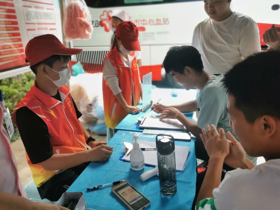 本次活动在学院食堂侧门前坪顺利开展,广大师生积极参与,在志愿者的暖心服务下,义务献血的师生们依次填表、体检、验血、抽血,他们中有的人是第一次献血,有的人则已经连续几年多次献血了,献血证上盖满了章。