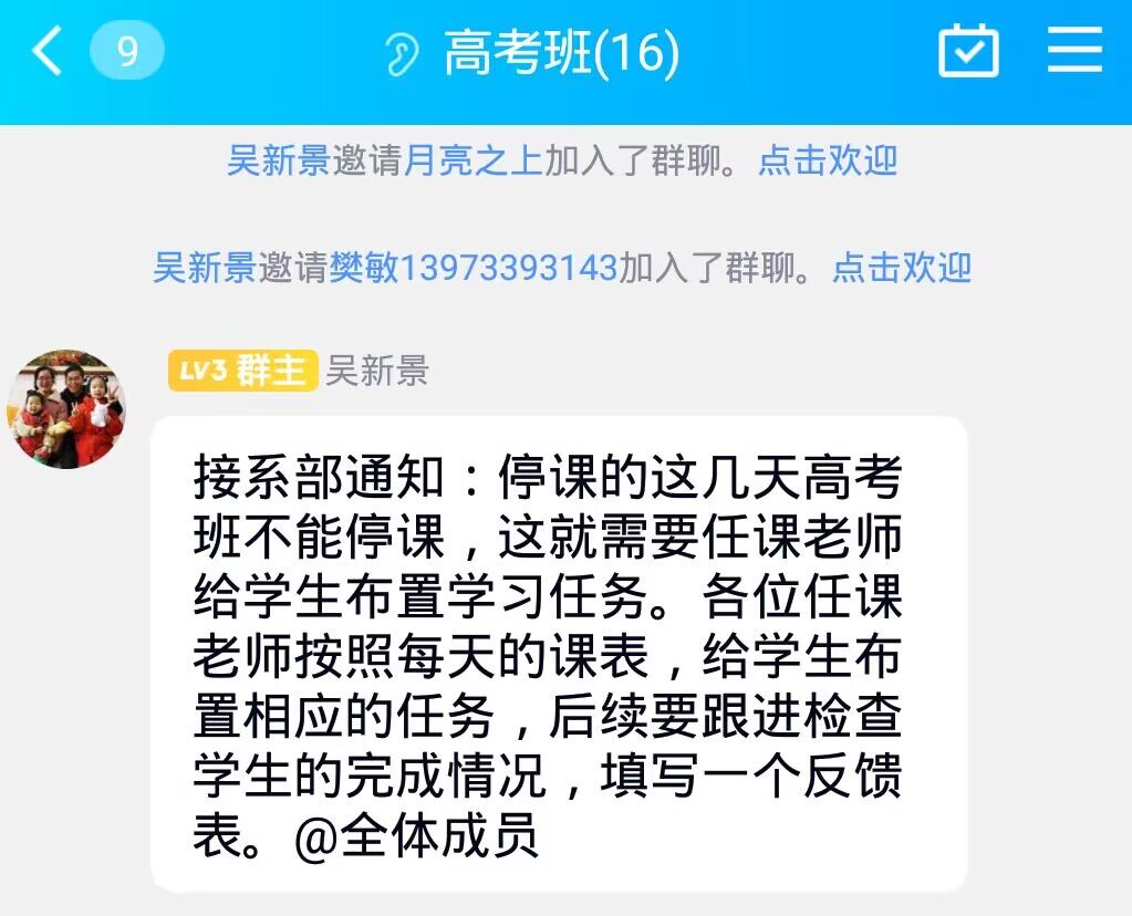 二是迅速组织任课老师布置学习任务,停课不停学。疫情防控第一天,学院公共管理系迅速组建了高考班任课老师教研群,由各位任课老师每天将学习任务发布,督促学生完成,晚上提交上传,系部汇总。对口班三个年级在疫情期间,停课不停学,力求保质,保量,争取最大限度减低疫情对学习进度的影响。