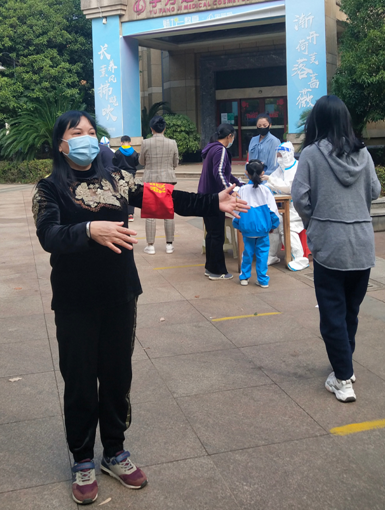袁志萍是湖南工贸技师学院一名退休教职工,虽然已经离开讲台多年,但她依然保持着一颗助人为乐的热心。家住嘉盛华府的袁老师这名志愿者还有双重身份,她既是所居住小区的志愿者还是一名所在社区的志愿者,用她的话说就是:“我是一块砖,哪里需要哪里搬“。袁老师说,疫情发生以来,她就第一时间报名参与到志愿者队伍中来了,她的工作主要是协助社区或者小区工作者和医务人员,维护核酸检测秩序,为小区居民送生活物资,安抚居民情绪,要求居民遵守防疫纪律等等,经常听见她拿着大喇叭,小区社区奔走呼喊,成为一位走在一线的“社区抗疫大妈”。11月5日晚,因为当时情况比较紧急,要求对小区所有人员进行核酸检测,等到小区全员做完核酸检测已经到了第二天凌晨三点,她也和其它医务人员以及志愿者一起坚守到最后一刻。袁志萍老师说,虽然已经退休了,但作为一名退休教师,继续发挥余热,做一些力所能及的事情也是自己应该做的。