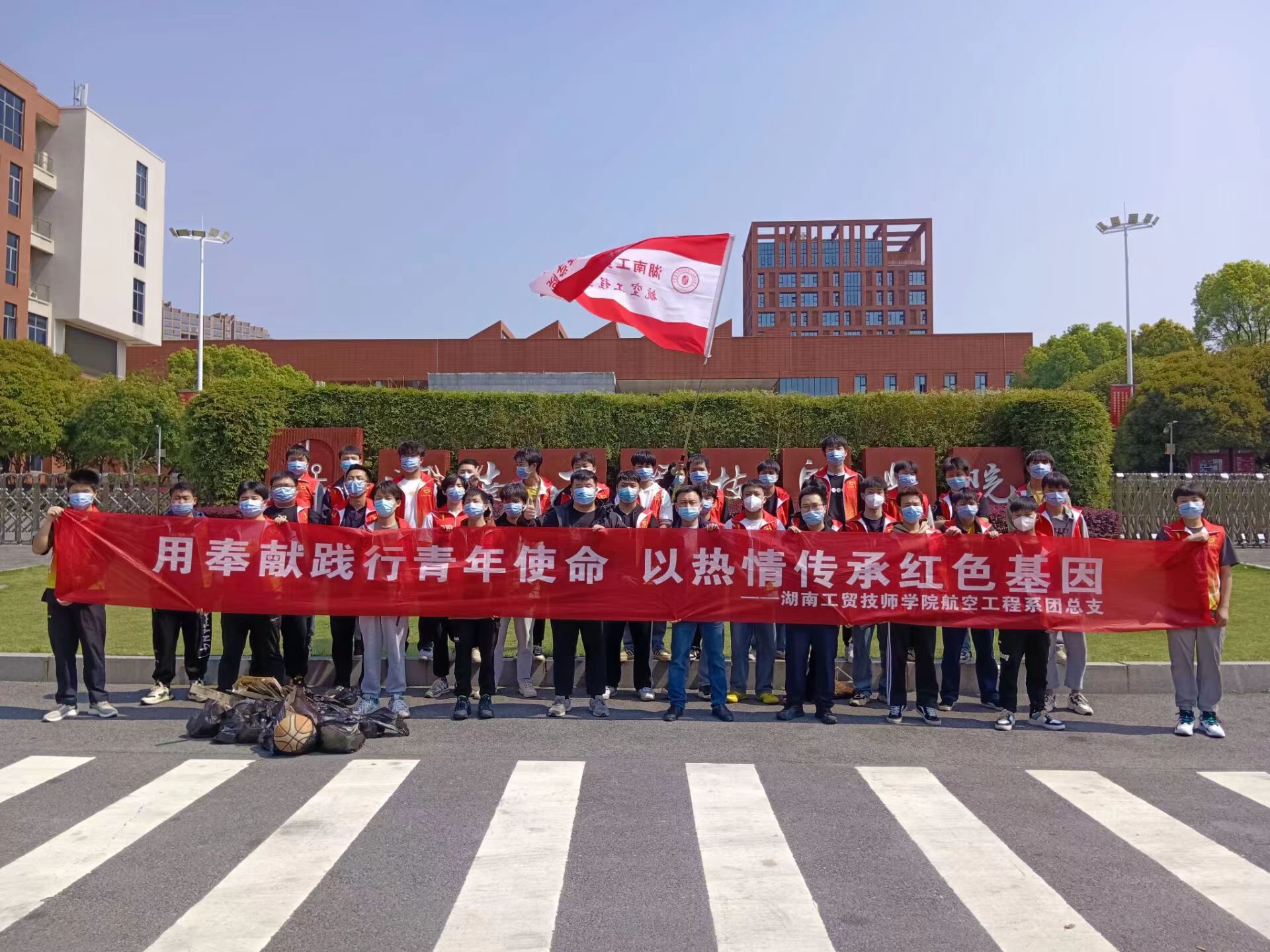 4月1日,学院航空工程系团总支组织系部志愿者开展“践行青年使命,传承雷锋精神,弘扬时代新风”的美化校园活动。
