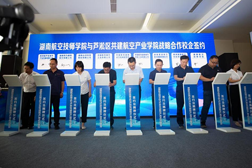 7月11日,湖南航空技师学院与芦淞区共建航空产业学院战略合作签约及揭牌仪式在芦淞区航空科创园举行。市委副书记、市委政法委书记胡长春,市委常委、副市长、株洲经开区党工委第一书记王庭恺共同为湖南航空技师学院芦淞航空产业学院揭牌,市人大原副主任、市职业教育协会会长杨宋虎,学院党委书记张格林,市委副秘书长、市档案馆馆长刘继承,市政府副秘书长黎平,市人社局党组书记、局长潘庆,市职教园管理办主任胡炯,芦淞区委书记唐卫湘,芦淞区委副书记、区长王强等出席,芦淞区委副书记、纪委书记、监委主任文韶松主持仪式。