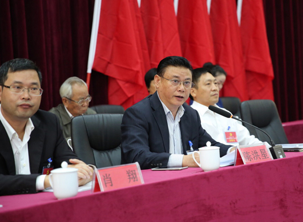市委组织部副部长、老干部局局长吴晓光(中)祝贺大会胜利召开