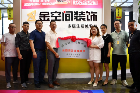 8月16日上午,学院建筑装饰系与株洲金空间装饰工程有限公司合作开设环境艺术设计专业订单班签约授牌仪式在企业进行,学院建筑装饰系主任沈朝辉、副主任万洋及教研室主任、株洲金空间装饰总经理彭友芳、株洲旗舰店店长汪洋、人力资源总监周雄怀、营销总监李可兵出席签约授牌仪式。学院环境艺术设计专业将开设金空间装饰雏鹰班,金空间装饰成为学院环艺专业实训示范基地。