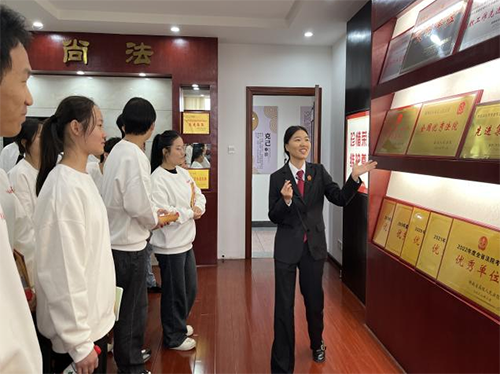 随后法院工作人员带领同学们参观了诉讼服务大厅、党建室、荣誉室等场所,了解了法院的机构设置、立案及司法案件的处理流程。通过荣誉室的一张张照片和一面面奖牌,再现了石峰区人民法院的峥嵘岁月,展现了几代法院人的辛勤付出。