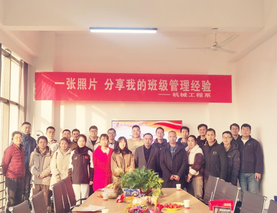 落实立德树人根本任务、促进班主任互学互助,1月11日下午,机械工程系在继志楼3000会议室举办了以一场以“一张照片分享我的班级管理经验”为主题的班主任工作经验交流活动。机械工程系党支部书记、主任赵刚,副主任谢应善,教务科长余嘉新及全体班主任和部分教师代表参加,会议由系学生科科长王韬主持。