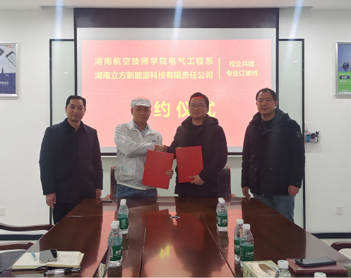 湖南立方新能源科技有限责任公司是一家生产新能源电池为主的国家“专精特新”重点小巨人企业,在职员工1000余人,2023年营收7亿元,是株洲地区规模大、影响好,倍受政府支持和社会关注的新兴企业。公司生产部门有大量机电维修维护和技术操作性岗位,与学院电气工程系机电技术应用和工业机器人等专业高度契合。在多年合作办学基础上,双方决定共同开办2024级机电技术应用专业订单班,进一步提升校企合作水平,充分发挥校企双方各自在高技能人才培养中的优势,培养出更多服务当地经济和社会发展的高技能人才。