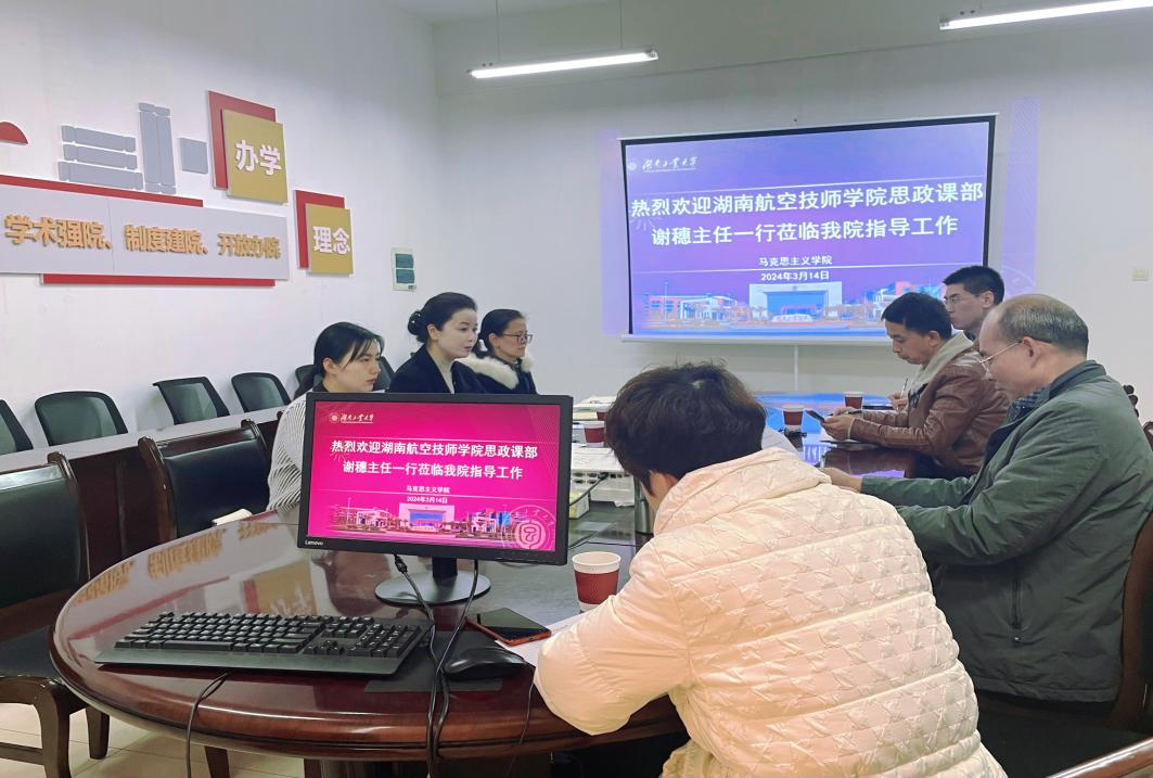 为深化学院思政教育改革,增强思政教育的理论深度与实践效能,学院思政课部一行四人于3月14日上午专程赴湖南工业大学马克思主义学院开展学术交流活动。此次交流得到了该院李正军院长、邓世平副院长等学院领导及教师代表的热情接待,双方在崇礼楼409会议室齐聚一堂,围绕思政教学的理论创新、实践探索及青年教师培养等议题展开深入研讨。