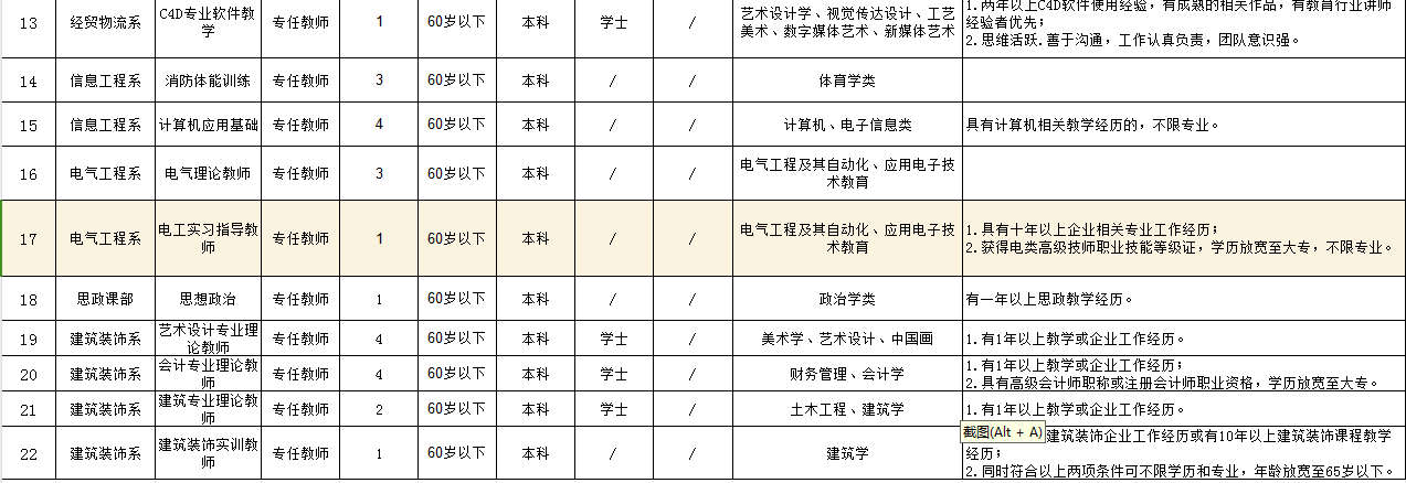 根据学院专业建设、人才培养和专业教学的需要,现面向社会招聘临聘教师若干人,招聘有关事项公告如下: