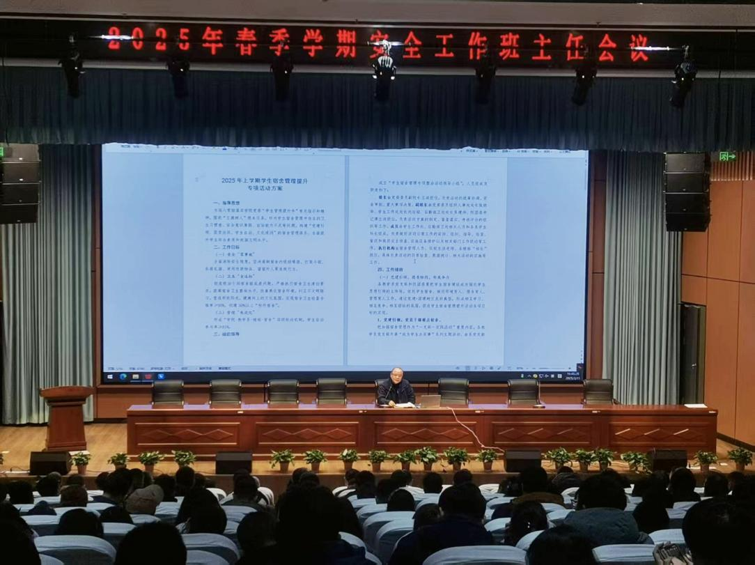 3月11日下午,学生工作处会同后勤保卫处在报告厅召开2025年全院班主任工作会议。学生工作处、后勤保卫处、各系学工负责人及全体班主任参会。