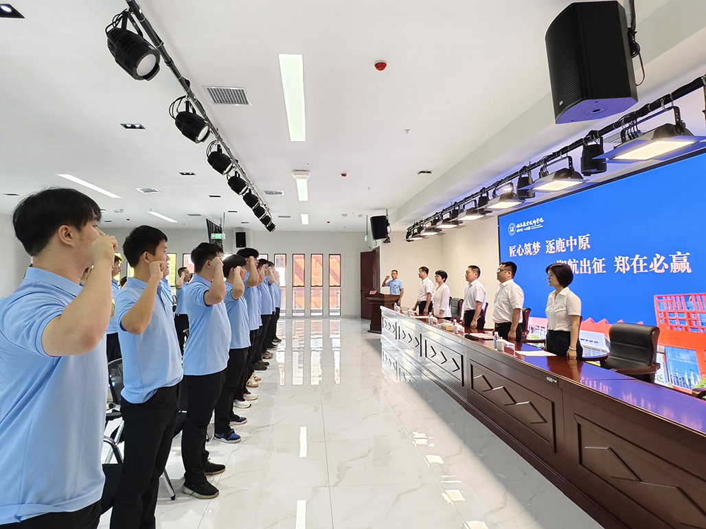 学院党委书记张格林在出征仪式上为即将出征第三届全国技能大赛的勇士们鼓劲加油。他在讲话中指出,国赛是顶尖高手云集的擂台,是展示真才实学的战场,更是实现自我超越的巅峰舞台,希望学院选手们拿出平时训练的最佳状态,沉着冷静、心无旁骛,以舍我其谁的霸气,以每分必争的锐气,向最高领奖台发起冲锋。