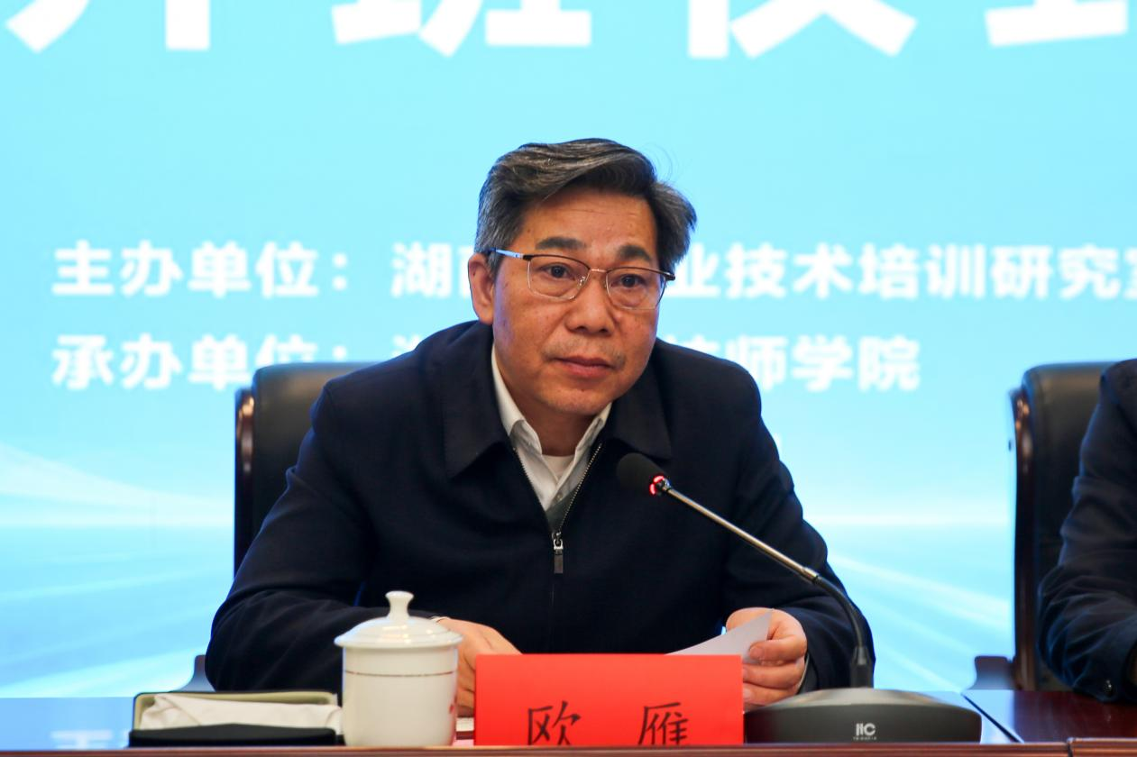 省人社厅职业技能鉴定中心副主任欧雁作开班动员讲话。强调,工学一体化教学改革是推动技工教育转型升级、培养高素质技术技能人才的关键举措,师资队伍建设则是改革落地见效的核心支撑。对全体学员提出期望,希望大家以此次培训为契机,沉下心来钻研业务、交流互鉴,切实提升一体化教学设计与实施能力,发挥示范引领作用,带动全省技工院校教学改革向纵深推进。