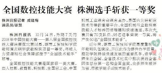 株洲日报10月16日报道:第八届全国数控技能大赛,