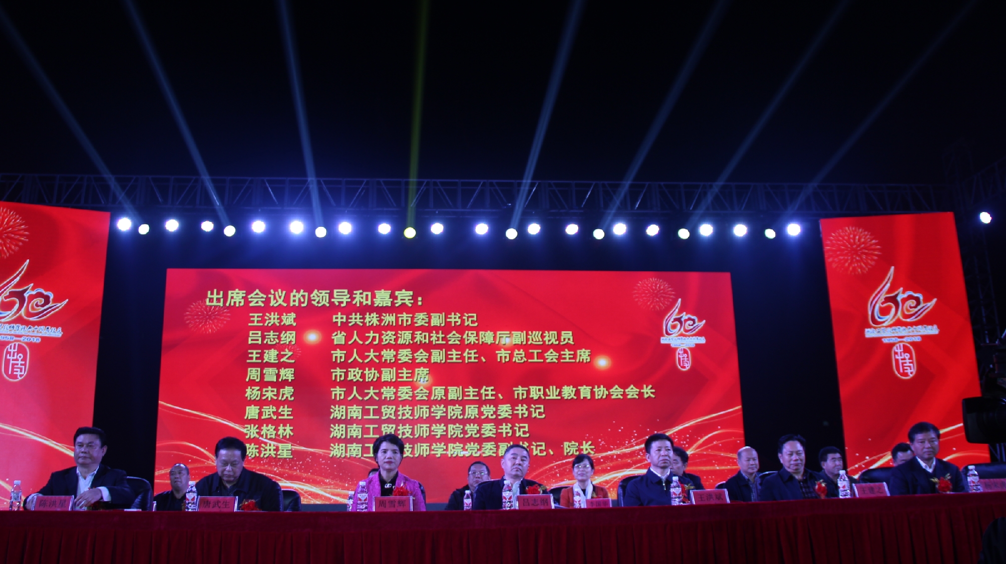 湖南省人力资源和社会保障厅副巡视员吕志纲在讲话中充分肯定了学院对于全省经济社会发展、科技创新和人才培养作出的突出贡献,向全校师生员工和海内外校友表示衷心祝贺,向为学校建设发展做出过贡献的老教师、老同志表示崇高敬意。并希望社会各界一如既往地重视、关心、支持我省技工教育事业发展,进一步营造尊重劳动、尊重人才、尊重创造的浓厚氛围。希望湖南工贸技师学院以建校60周年为新的起点,奋力推动学校更高质量的内涵发展,为全市、全省技工教育事业发展立起新的标杆,为推动“五个强省”战略、服务湖南创新驱动发展提供更加有力的技能人才支撑和智力保障。