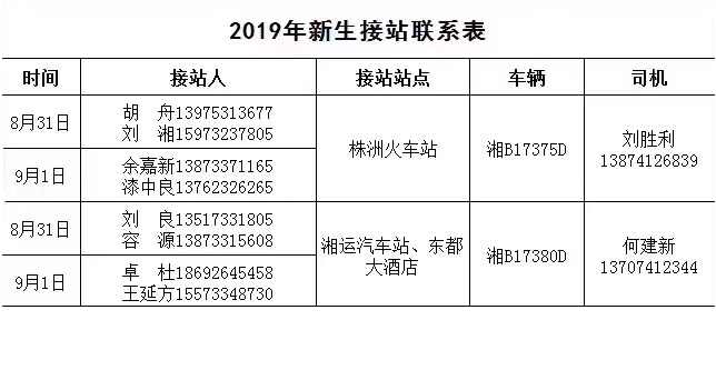 7、8月31日、9月1日学院将派专人在株洲火车站、中心汽车站及T68路公交车终点站接站。联系电话:0731-22039660、22039661。