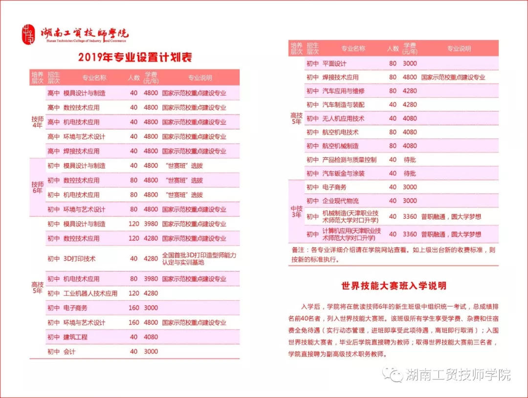 世界技能大赛班入学说明: