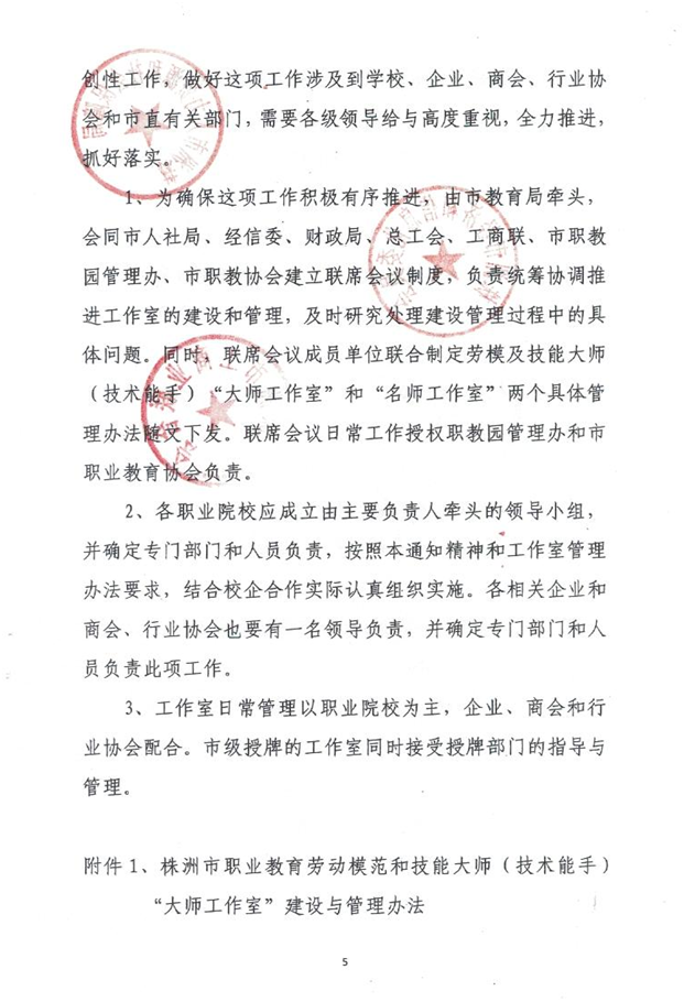 株洲市职业教育劳动模范和高技术技能人才“大师工作室”建设与管理办法