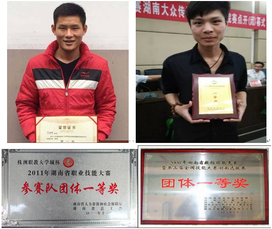机械工程系目前设有数控技术、模具技术、机械加工、机械基础四个教研室;模具设计与制造、数控技术与应用,3D打印技术与应用三个专业,其中数控与模具两个专业为湖南省示范性特色和特色专业,专业建设历史悠久,成果丰硕,在省市乃至全国的技能比赛中屡获佳绩,在全省技工院校专业排名中位列首位,并通过全国示范校重点专业的验收。3D打印技术与应用为湖南省职业院校中首开专业,是我院紧跟现代制造行业形势开设的新型实力专业。部分学生获奖情况如下:
