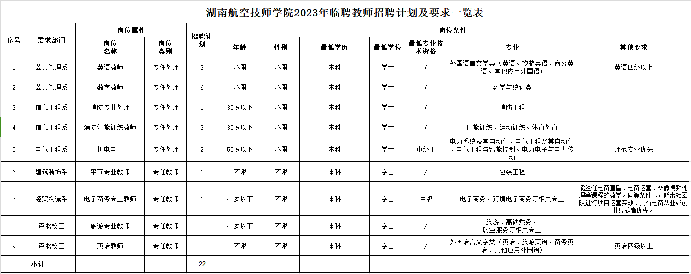 此次招聘岗位9个,招聘计划22个,具体要求详见附件1。