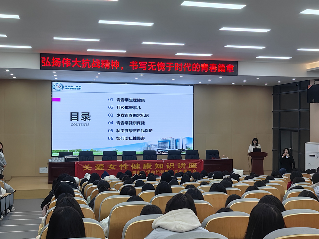 为引导学生树立科学的健康观念,守护青春期学生健康成长,11月18日晚,建筑装饰系携手千金药业在学院阶梯教室举办了一堂精彩的女性健康知识讲座。本次讲座邀请株洲市二医院妇产科主任兼妇科主任肖文红主讲,为在场学生带来了专业、生动且实用的青春期健康教育课程。