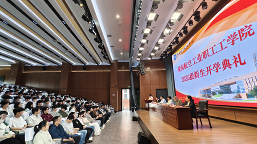 4月18日,湖南航空工业职工工学院成教2026级新生开学典礼在学院多功能学术报告厅隆重举行。447名怀揣梦想的新生齐聚一堂。湖南航空技师学院党委委员、副院长李清出席典礼,继续教育部部长罗湘南主持本次活动。