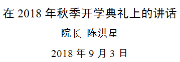 今天,我们在这里隆重举行2018年秋季新学期第一次升国旗仪式和新学年开学典礼。首先我要对新入职的老师和2018级新同学表示热烈欢迎,这几天,因为你们的到来,校园里充满活力与生气,你们带着新的梦想来到新的天地,学院也因此迎来了新的希望;其次我要对挥别轻松惬意假日、满怀信心与斗志站在新学年起跑线上的我的同事和几千名高年级的同学们致以最诚挚的问候和衷心的祝福,学院由衷感谢大家在过去的日子里为湖南工贸技师学院增光添彩,书写华丽的篇章。