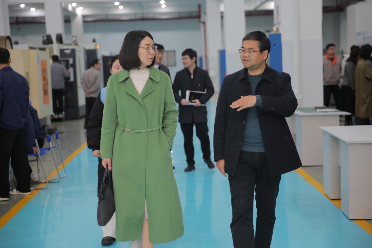 江泓一行首先参观了学院世赛、数控等实训场地,详细了解了学院的特色专业、实训条件和办学成果。