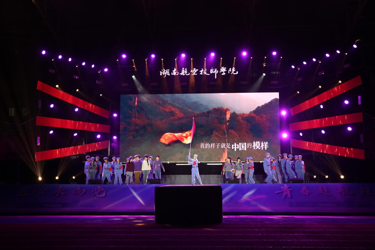 晚会在开场舞《青春向未来》中揭开序幕,整场晚会内容涵盖歌舞、音诗画、诗朗诵、小品等类型,以“匠心向党”“飞扬青春”“领航谱新”三个篇章展开。“匠心向党”篇章,将信仰与使命融入艺术表达,用深情演绎对党的忠诚与追随,诠释了新时代青年技能报国的初心与担当。“飞扬青春”则切换至轻快明朗的节奏,充满青春活力的社团展示与幽默而富含思辨的小品相继登场,生动展现了校园生活的多彩、青春成长的烦恼与追求,引发了全场师生的广泛共鸣,笑声与掌声不断。在“领航谱新”篇章中,《破晓》《航院梦想》等节目唱响了学院学子们对未来的无限憧憬、对梦想的执着追求,表达了他们将个人航程融入时代洪流,奋勇争光、谱写新篇的壮志豪情。